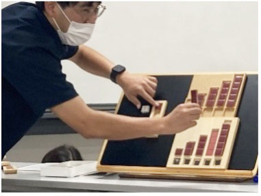 ●たけひろくんの数の学習の経過について、実際に教材を使って説明しました。