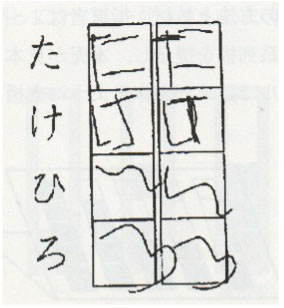 “たけひろくんの文字…線には幅がある。面は人間行動の基本。面から線ができ、この面上に空間ができる”
