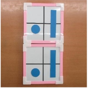 4マス見本合わせでも、見本を置く場所を上にしたら(縦に並べた)、みごとに見本と同じ場所にマグネットを置くことができました。